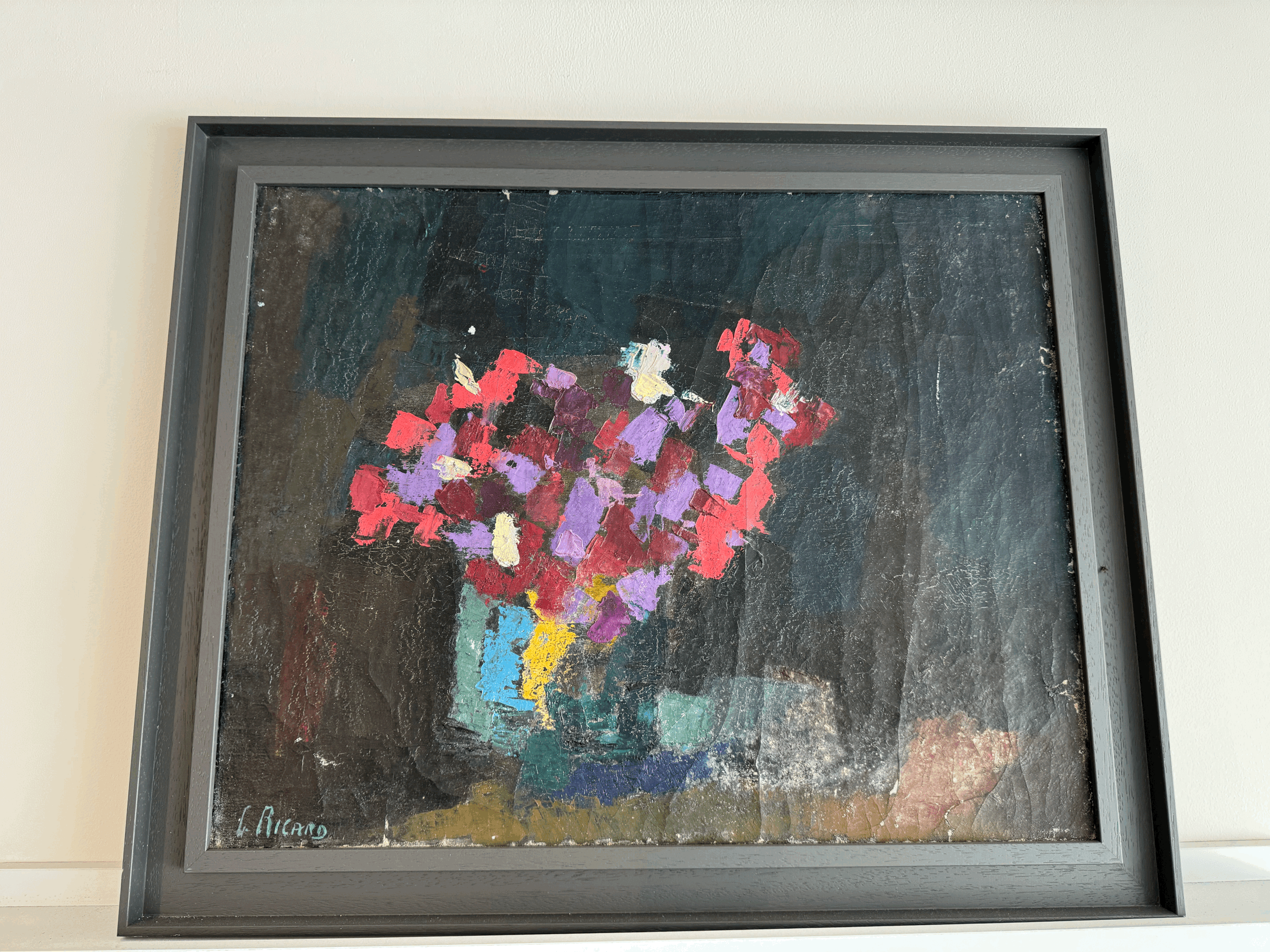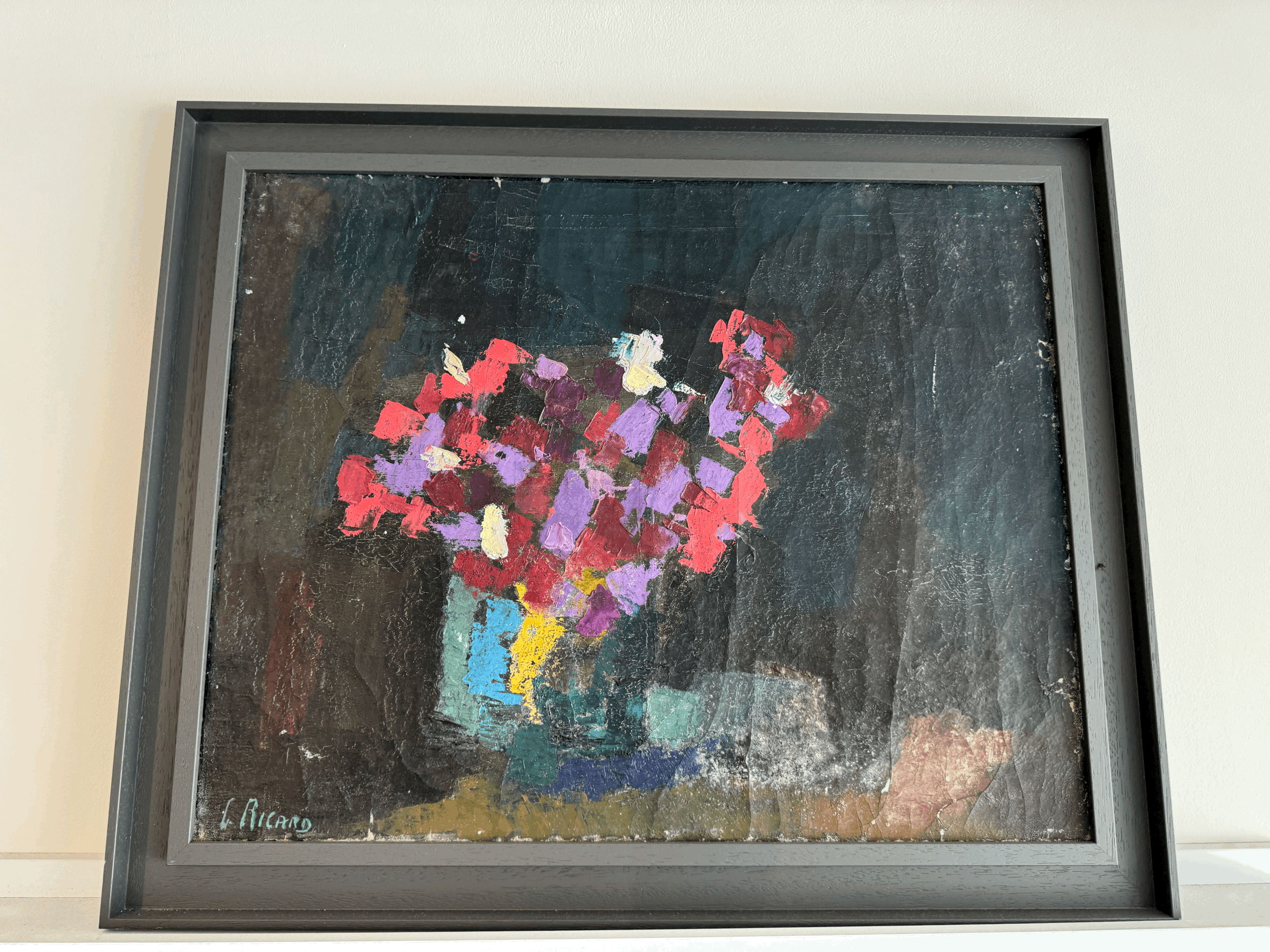 ART › Abstract Flower Painting Image 1 of 5 Image 2 of 5 Image 3 of 5 Image 4 of 5 Image 5 of 5 Abstract Flower Painting £450.00 Stunning abstract floral paintingSigned by artist G RicardW66 x H54 framed Add To Cart Added! Stunning abstract floral paintingSigned by artist G RicardW66 x H54 framed