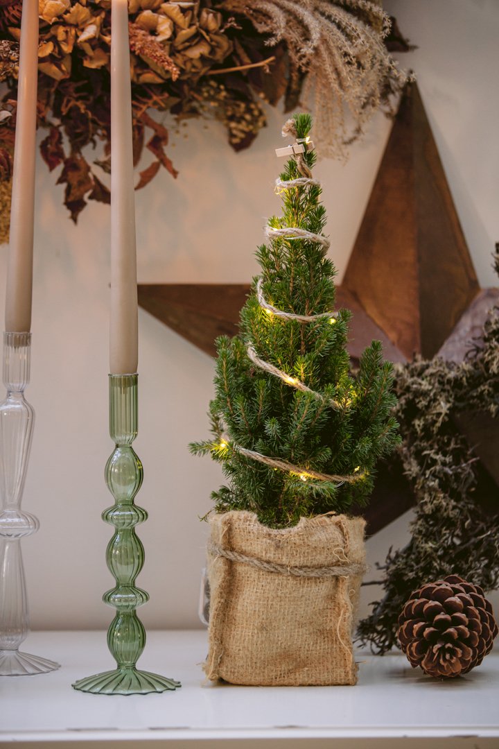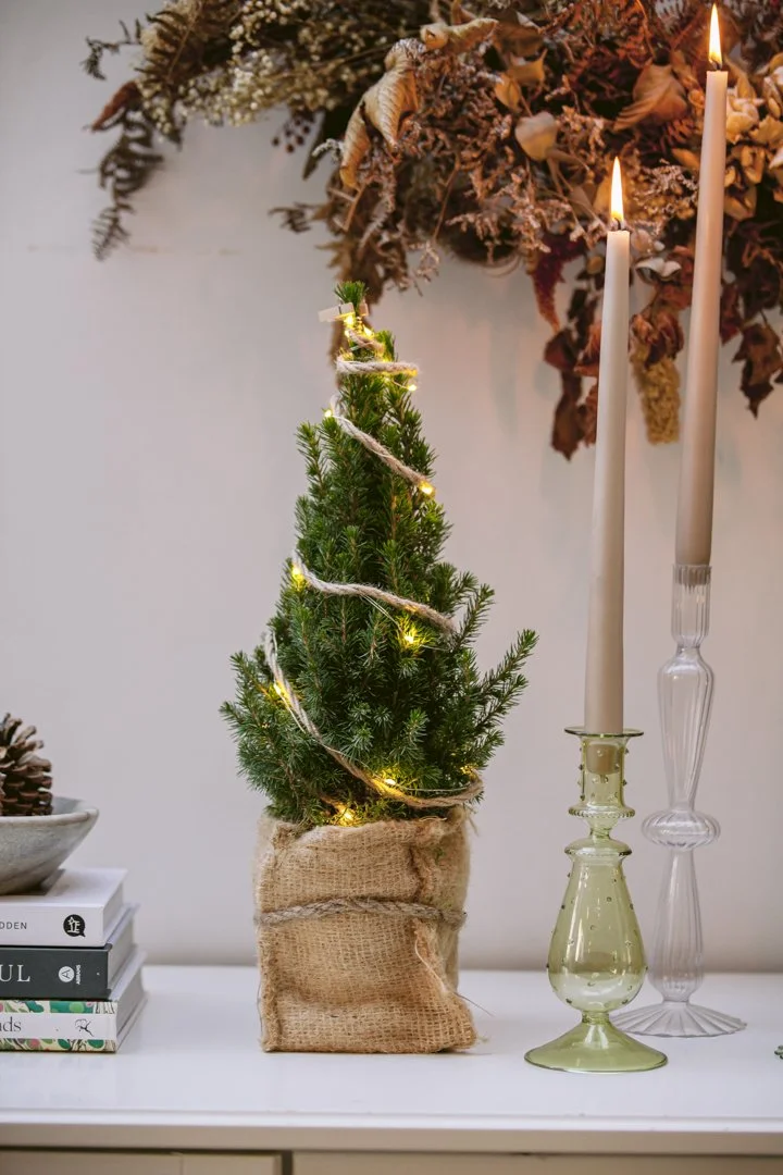 CHRISTMAS DECOR › Mini Christmas Tree with lights Image 1 of 4 Image 2 of 4 Image 3 of 4 Image 4 of 4 Mini Christmas Tree with lights £25.00 sold out Mini Christmas Tree with lights in brown hessian bag Sold Out Added! Mini Christmas Tree with lights in brown hessian bag