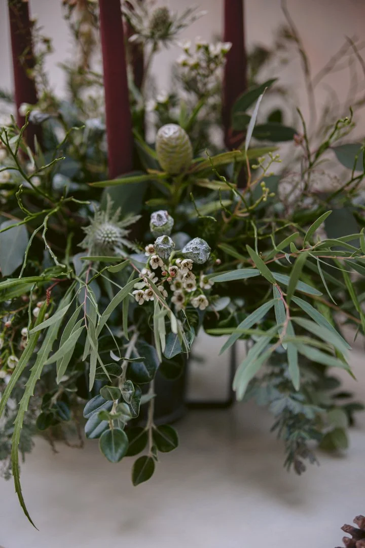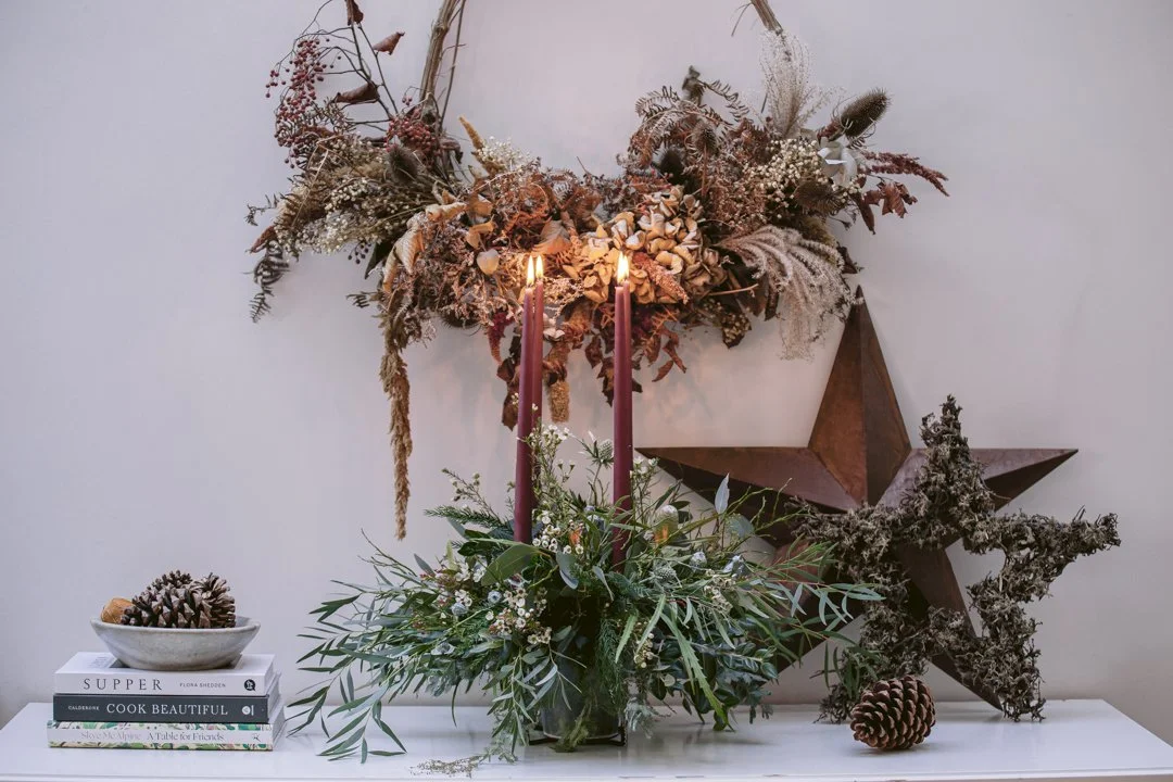 CHRISTMAS DECOR › Snowflake Foliage Candle Christmas Centrepiece Image 1 of 3 Image 2 of 3 Image 3 of 3 Snowflake Foliage Candle Christmas Centrepiece from £40.00 Snowflake Foliage Christmas Centrepiece with mixed berries, white wax flower and mixed foliage. Candle included Size: Single Candle Trio of Candles Add to Cart Added! Snowflake Foliage Christmas Centrepiece with mixed berries, white wax flower and mixed foliage. Candle included
