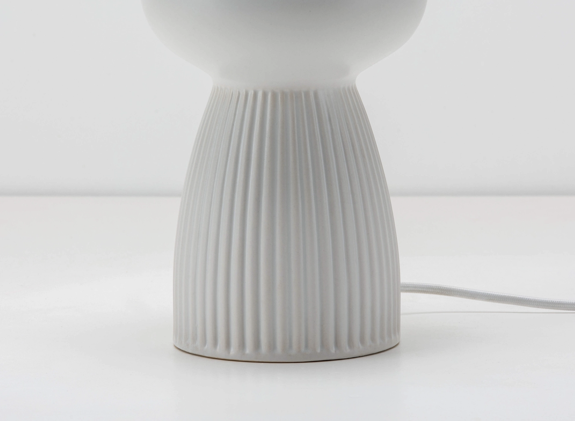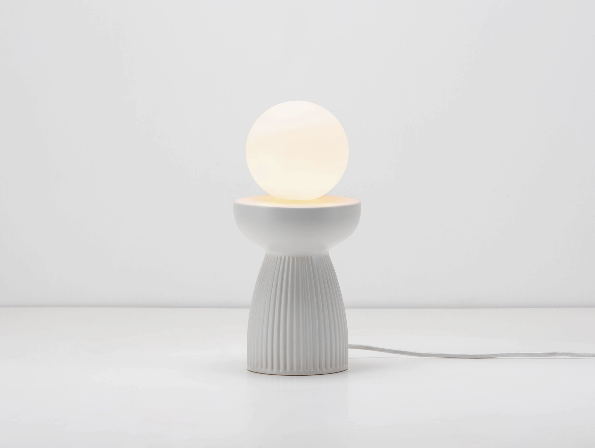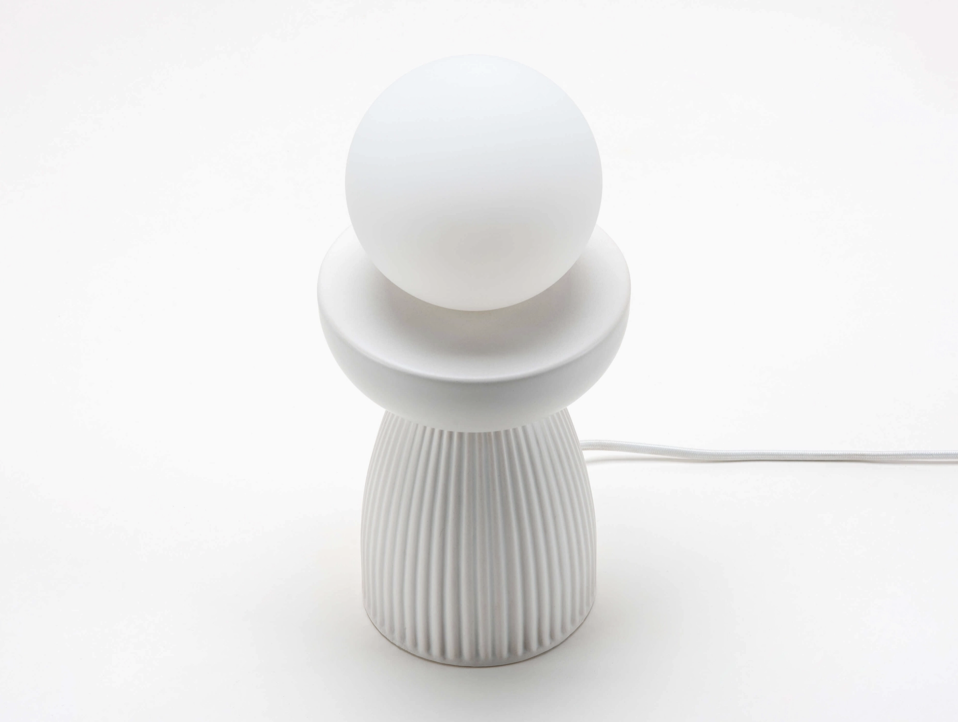 Inspired by nature, this lamp combines the tactile and cool ceramic finish with a ribbed form. Paired with our opal glass shade, it's the perfect calming light for any desk, side table or bedside. 2 year guarantee.