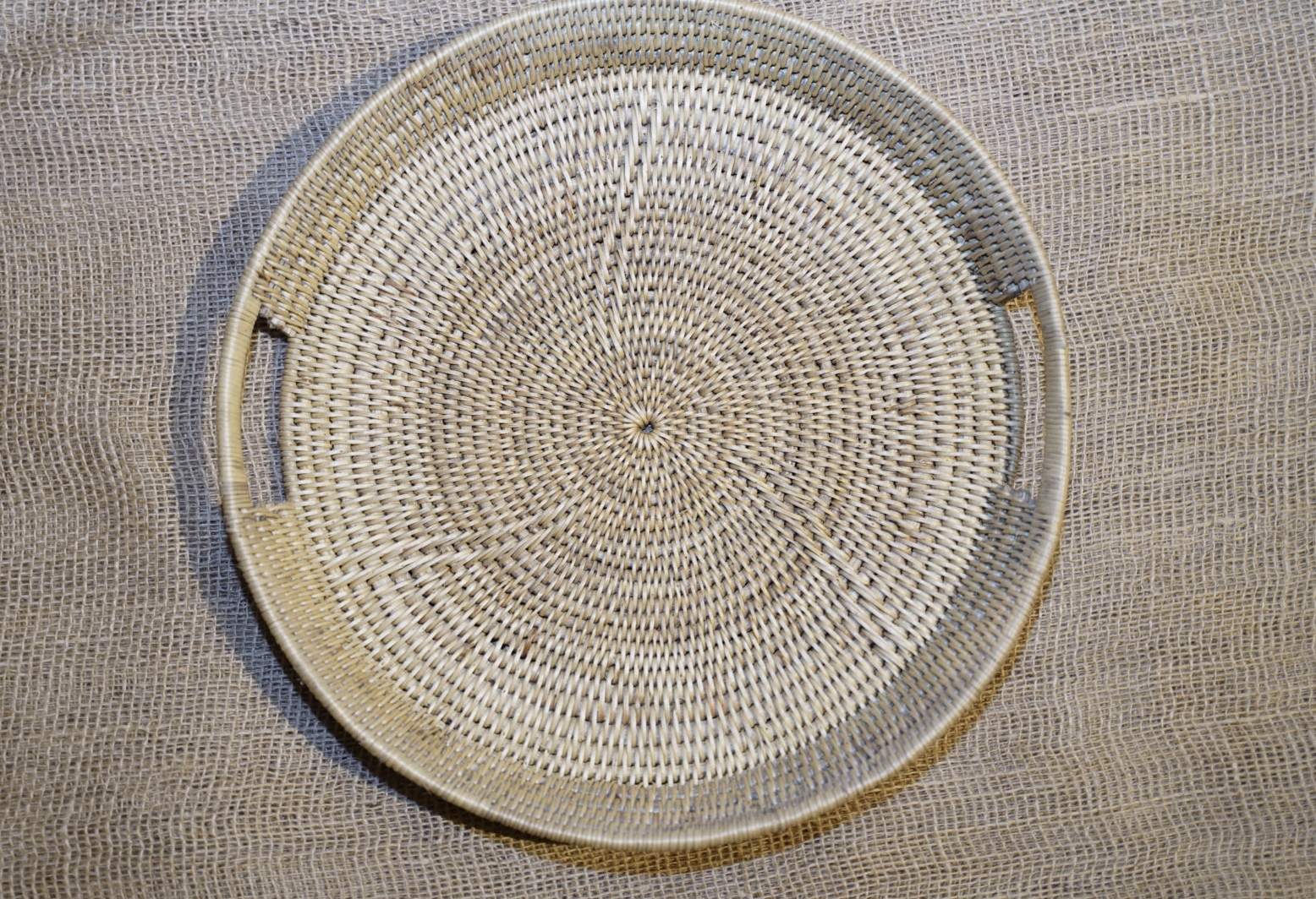 Makenge baskets are testament to the weaving skills of the Mbunda and Losi people of Zambia. They are original pieces that have been used to winnow grains. How they are made:- The baskets are made from the Makenge tree which is a small tree and sends out very long shallow roots. The roots have fine hairs and they are dug from the ground by the men and thinned out to be used. Only the small roots are gathered, so the bush remains alive to produce more for the future. The roots are boiled and dyed with natural pigments and left to dry out. It takes several weeks to make each of these very unique baskets. Due to the handmade nature of these incredibly durable baskets the sizes will vary slightly. Our baskets are close to or just over measures below. They can be hung on a wall if you add a small wire to the back or placed onto a table or a plate display stand. Size: 30cm