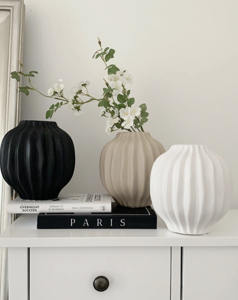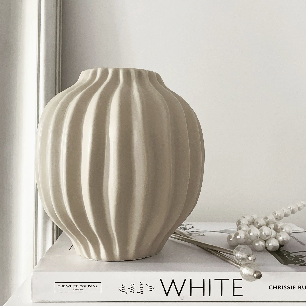 Rowan is a timeless vase designed to seamlessly fit with today's modern aesthetic. Please note there may be the occasional mark or pin hole where the ceramic has dried unevenly. This is due to the baking method involved in the manufacturing process of this vase and is often the case with ceramic goods. All vases are individually made so there can be variations between items. Dimensions- H19 x W13 cm