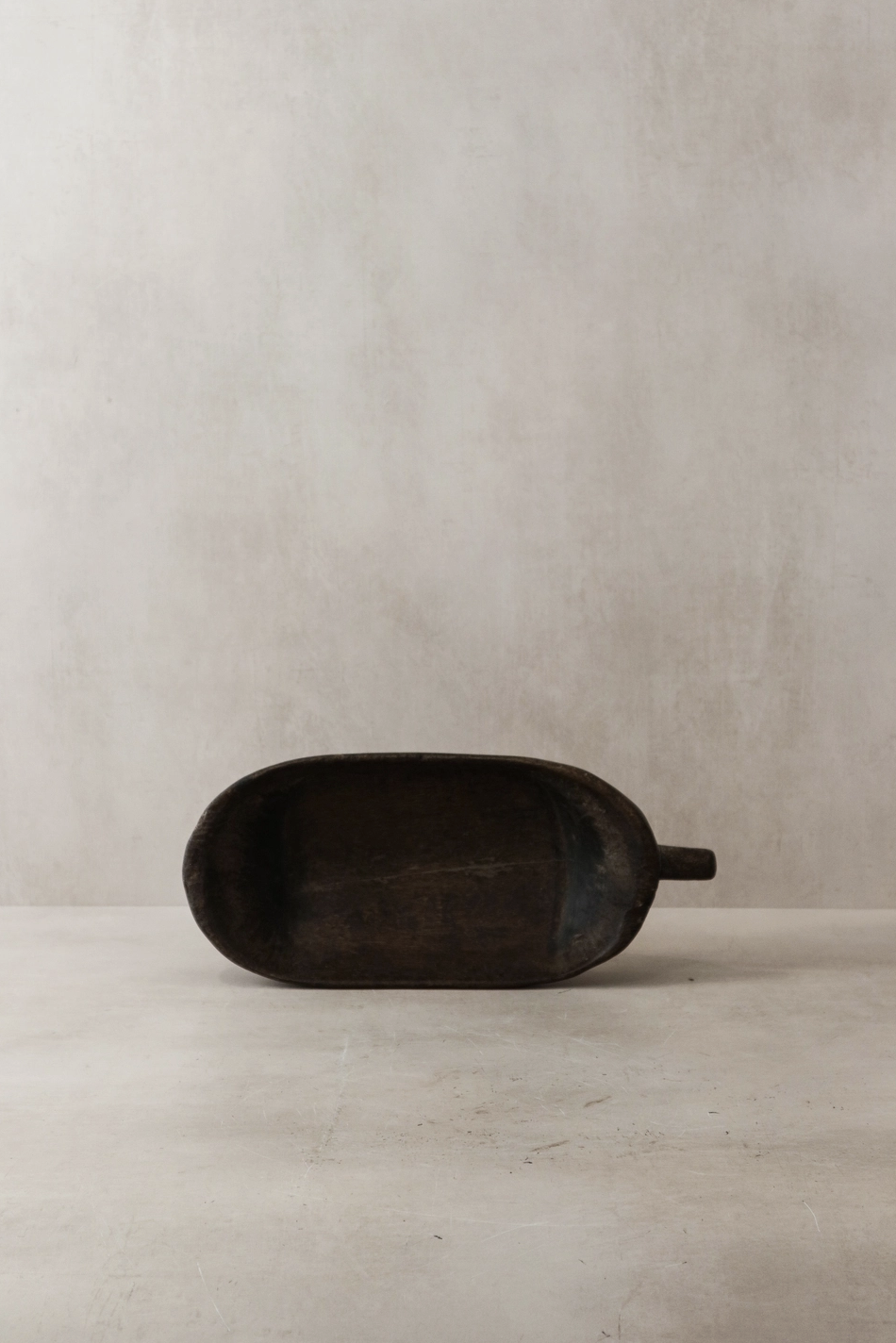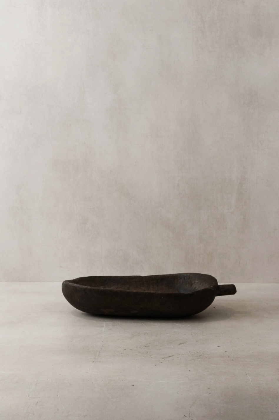 A vintage wooden Tutsi bowl, meticulously hand-carved from a single piece of wood and adorned with tin repairs, epitomizes the artistry and cultural essence of the Tutsi people of East Africa. With graceful curves and a polished surface, it marries form and function seamlessly. These bowls, historically versatile for holding food, grains, or ceremonial offerings, serve as tangible embodiments of the Tutsi heritage, harmoniously blending nature's beauty with tradition and artistry. Size: 8cm H x 40cm L x 17cm W