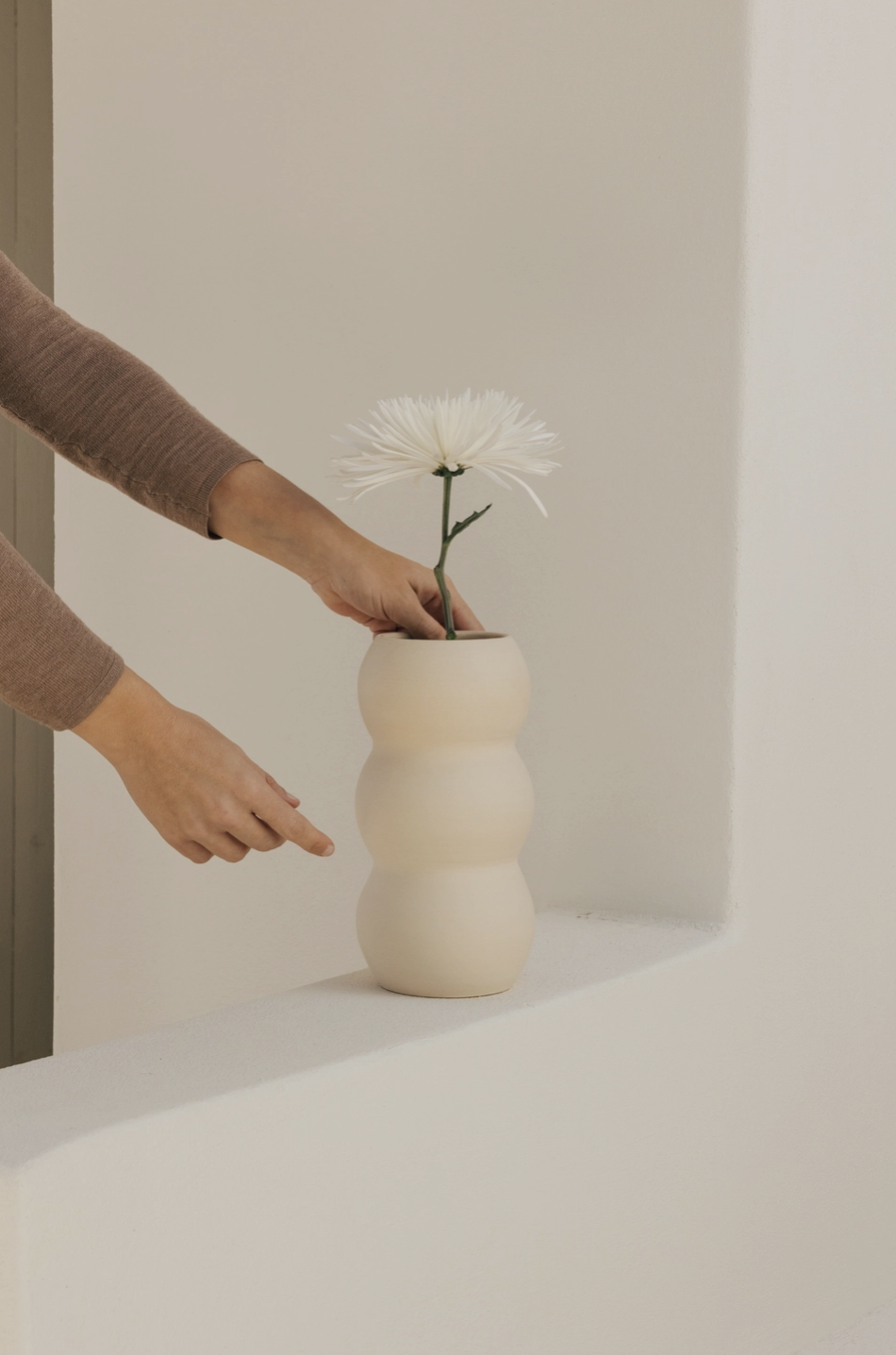 Ideal vase for decoration and fresh flowers. It has a white color with a rough texture. The part is waterproofed. Monochrome induces relaxation, meditation and fantasy. White defines the pieces in this collection: it offers a liberation and connection with the essence of existence, removing distraction from the trivial. From beachfront homes to rustic homes in places remote, Each piece is handmade and unique. The traces of craftsmanship are perceptible on each piece. The dimensions and color reflected are indicative and may vary due to the manufacturing process.